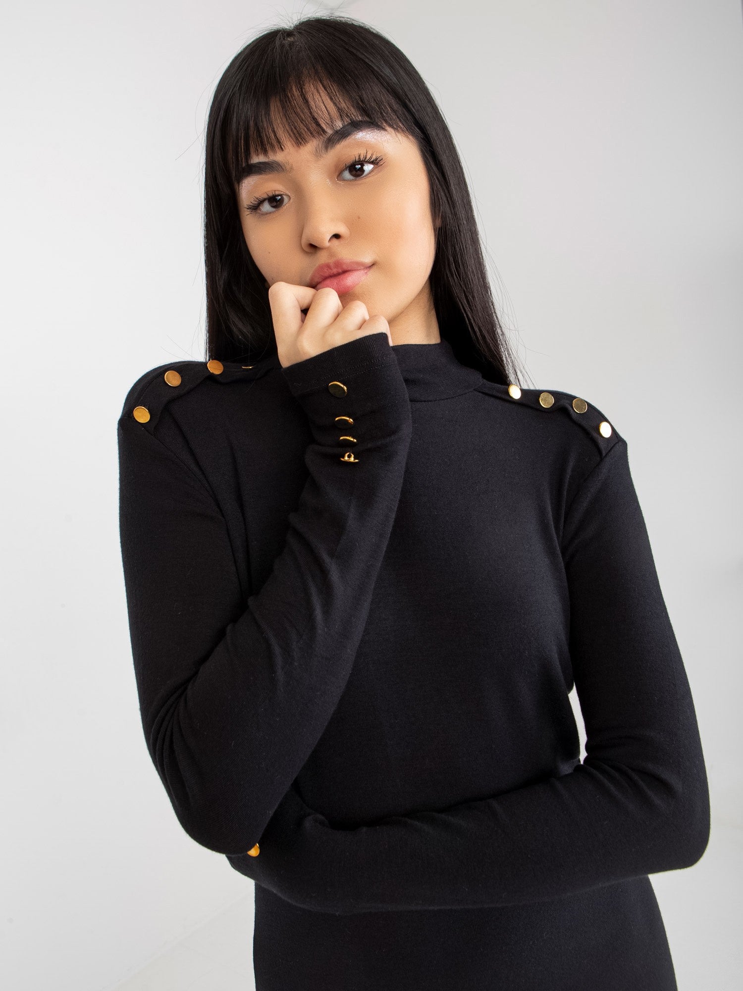 Čudovita elegantna obleka v črni barvi in zlatimi gumbki. Obleka je iz zelo kakovostnega, lahkotnega in na otip zelo prijetnega materiala. Zaradi svojega elegantnega dizajna se bo krasno podala na vaše telo in je primerna tudi za poslovni izgled ali razne dogodke. Univerzalna velikost (XS-M). Pranje pri 30 stopinjah. Material: 95% bombaž, 5% elastan. Tabela velikosti- univerzalna velikostobseg prsi v cm: 74-89 cmobseg pasu v cm: 60-73 cmobseg bokov: 84-98 cm