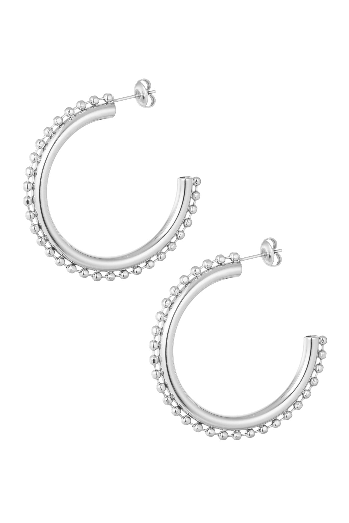 Kako lepi so ti prelepi osnovni srebrni uhani s kroglasto obliko! S temi uhani zagotovo ukradete pozornost, imajo pa tudi lep detajl; so popolni tako za zabavo kot za vsakodnevno nošenje. Uhane lahko kombinirate tudi z več kosov nakita. Uhani so izdelani iz nerjavečega jekla in merijo 4,5 cm.