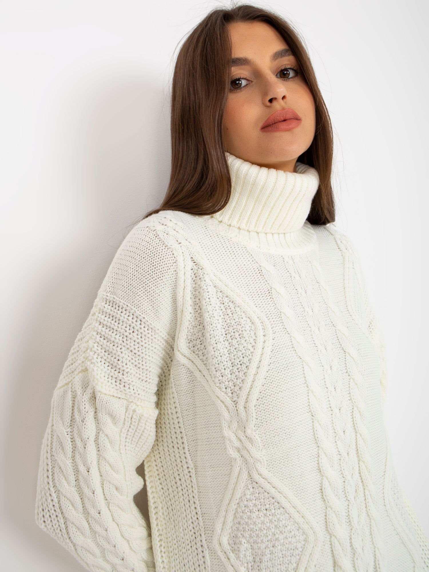 Krasna pletena obleka v puli varianti z dolgim ovratnikom. V beli barvi z nežnim vzorcem. Debeljša obleka vsebuje tudi volno in je primerna tudi za hladnejše vreme. Idealna za sprehod, delo ali druge opravke. Univerzalna velikost (S-M). Pranje pri 30 stopinjah. Material: 30% volna, 70% viskoza Tabela velikosti- univerzalna velikostobseg prsi v cm: 74-89 cmobseg pasu v cm: 60-73 cmobseg bokov: 84-98 cm