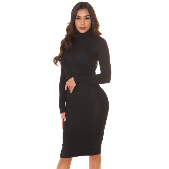 Navdušujoča in zares čudovita dolga pletena obleka v črni barvi. Z dolgimi rokavi in dolgim ovratnikom se krasno poda vsakdanjemu ali elegantnemu stilu. Univerzalna velikost (XS-M). Material: 70% viskoza, 30% poliamid. Pranje pri 30 stopinjah. Tabela velikosti- univerzalna velikostobseg prsi v cm: 74-89 cmobseg pasu v cm: 60-73 cmobseg bokov: 84-98 cm