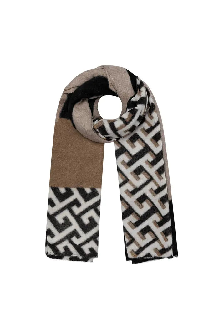 Čudovit šal v črno - bež barvni kombinaciji in potiskanim vzorcem. Šal je izdelan iz 100% poliestra, ki greje in ne srbi. Dimenzije : 185x85 cm. Šal je lep in velik in ga zato lahko nosite na številne načine.