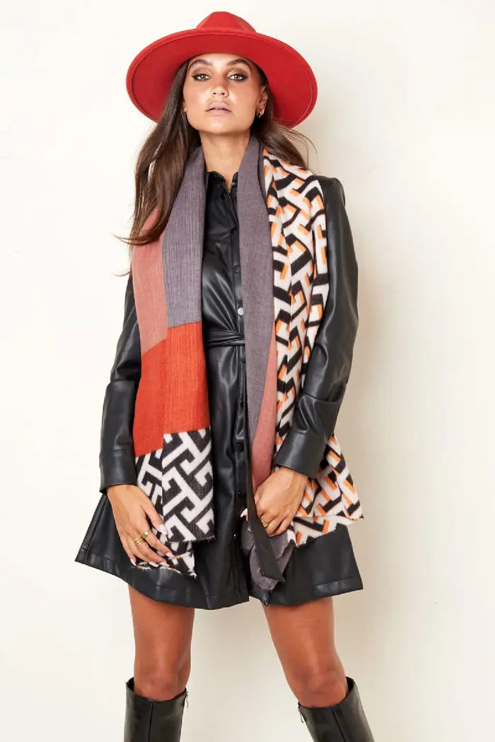 Čudovit šal v rjavo - bež barvni kombinaciji in potiskanim vzorcem. Izdelan iz poliestra. Dimenzije šala: 185x85 cm. Šal je lep in velik in ga zato lahko nosite na številne načine.