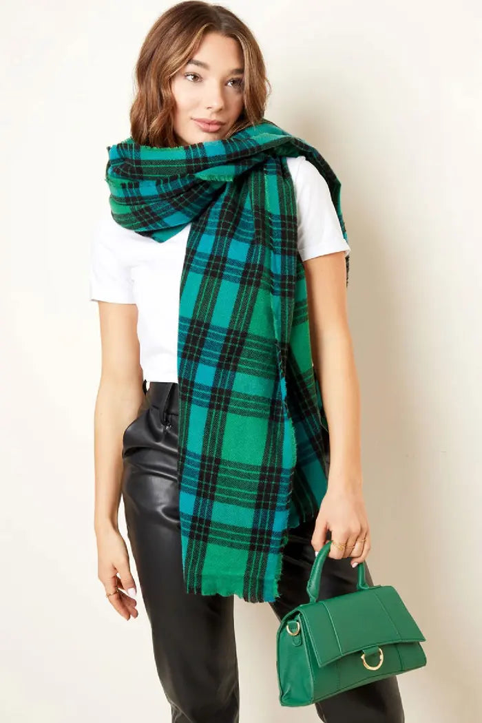 Čudovit šal v zeleni barvi s črnim karirastim vzorcem. Moderni in mehak šal iz 100% poliestra. Dimenzije šala: 200x80 cm. Odlično se poda različnim oblačilom in modnim dodatkom.