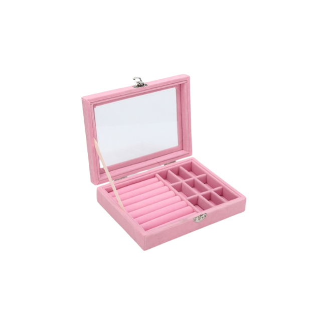 premišljeno zasnovana škatla za nakit, razdeljena na predelke kamor lahko shranite ogromno vašega  nakita. sestavljena iz kakovostnih materialov in prevlečena z žametno tkanino. zaradi svojega videza tudi kot dekorativni element vašega prostora. višina: 4,5 cm , širina: 20 cm, dolžina: 15 cm. Roza barva.
