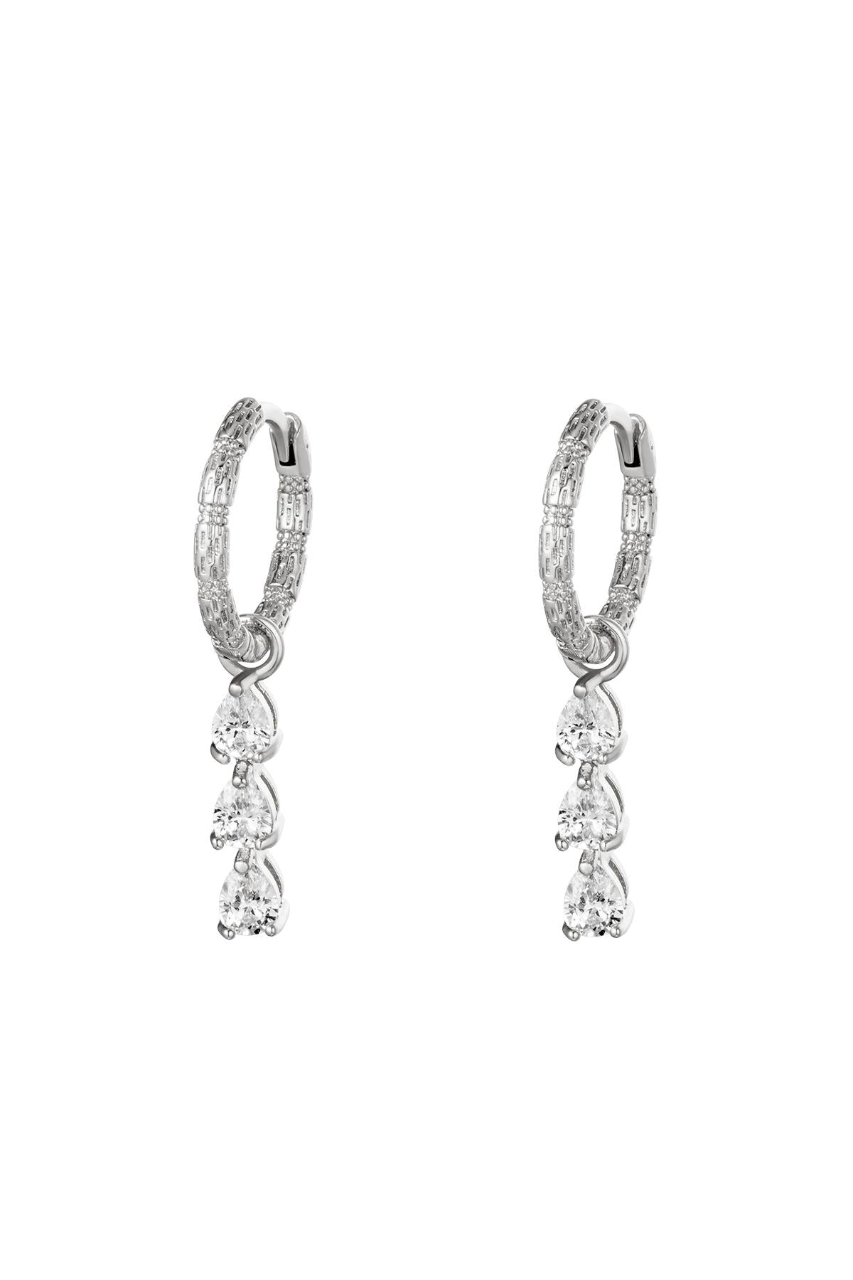 Elegantni uhani. V srebrni barvi. Izdelani iz bakra, cirkonija ter pozlačeni. Uhani so veliki 3 cm.