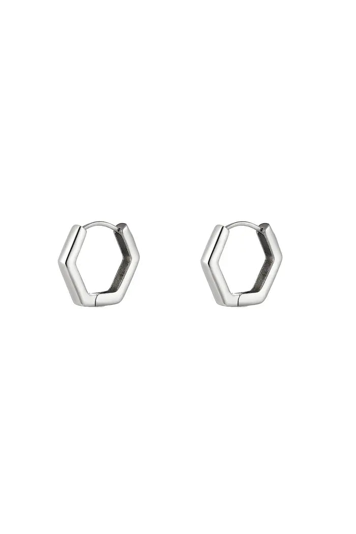 Uhani srebrne barve v obliki šesterokotnika.  Moderni in stilski uhani, ki se jih lahko kombinira kamorkoli.  Izdelani iz nerjavečega jekla in veliki 2cm.