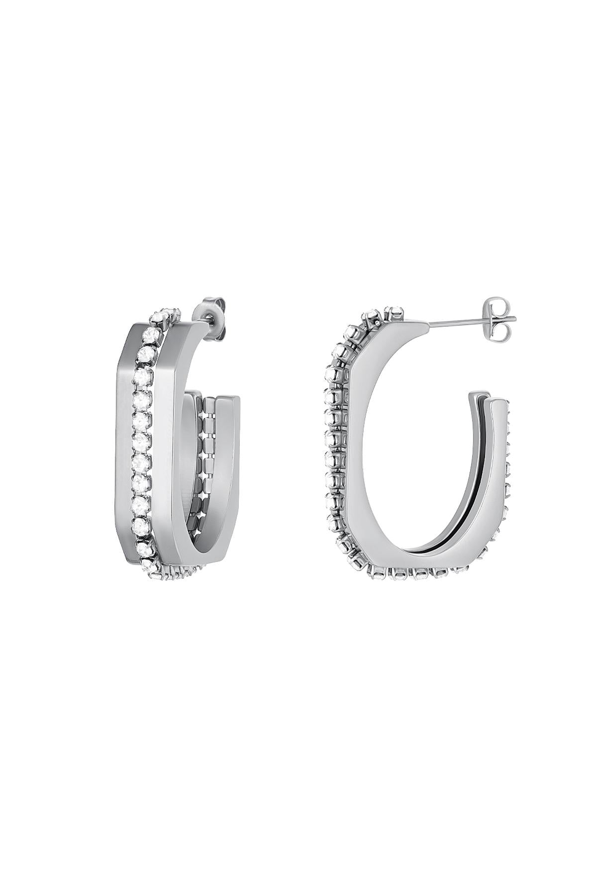 Čudoviti uhani v srebrni barvi, okrašeni s kamni. Velikost uhanov je 3cm x 2.10cm. Uhani so izdelani iz nerjavečega jekla.
