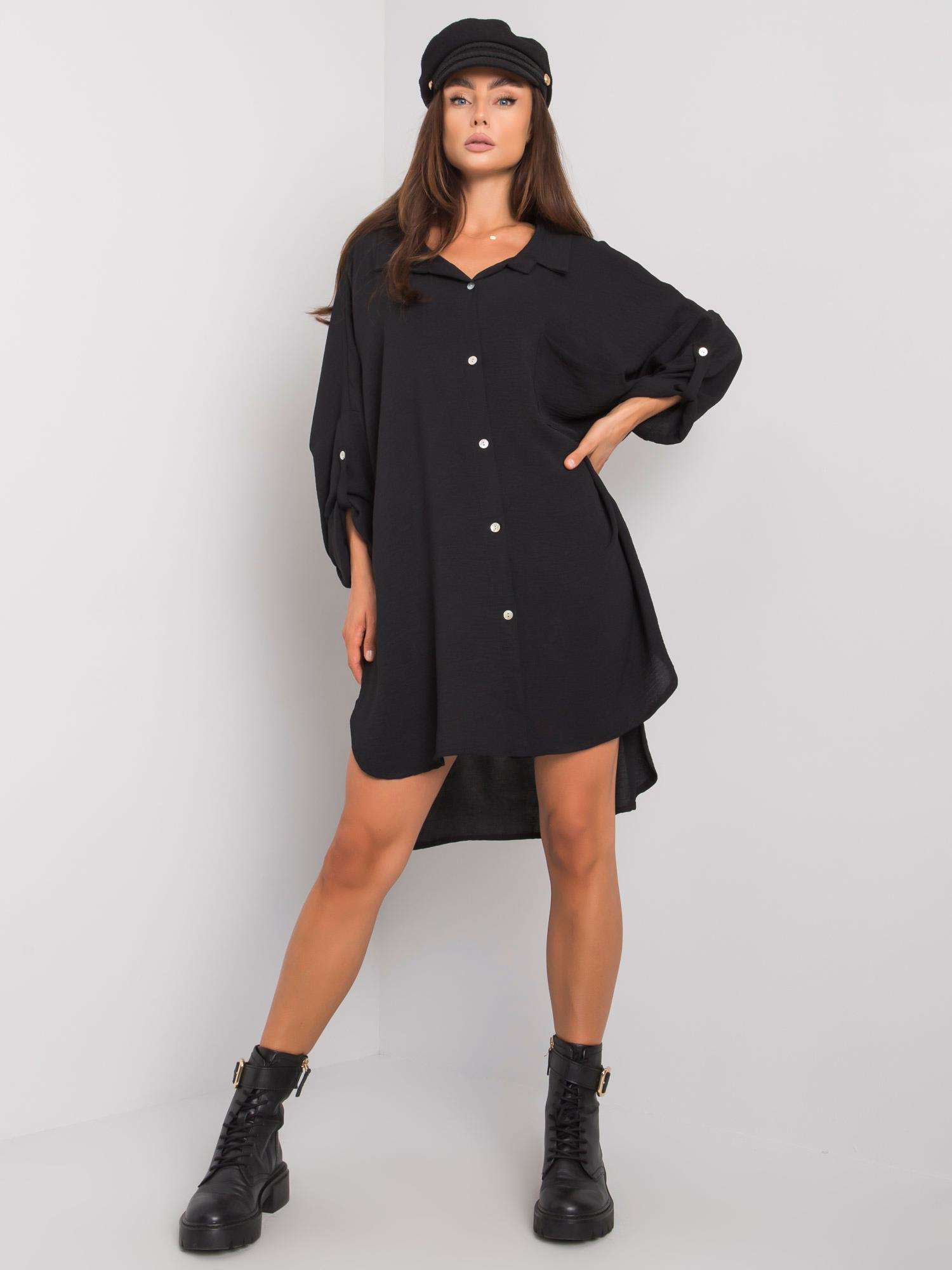 Prikupna ohlapna obleka z dolgimi rokavi in gumbki. v elegantni črni barvi. Univerzalna velikost (XS-L). Material: 95% poliester, 5% elastan. Pranje na 30 stopinjah. Tabela velikosti- univerzalna velikostobseg prsi v cm: 74-89 cmobseg pasu v cm: 60-73 cmobseg bokov: 84-98 cm